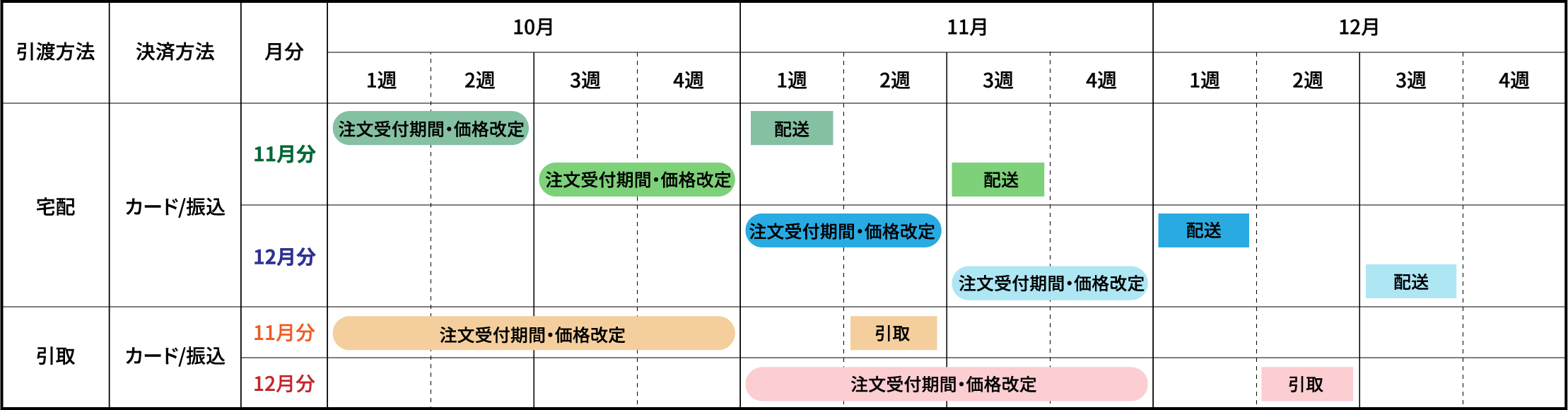 配送スケジュールは以下のとおりです。