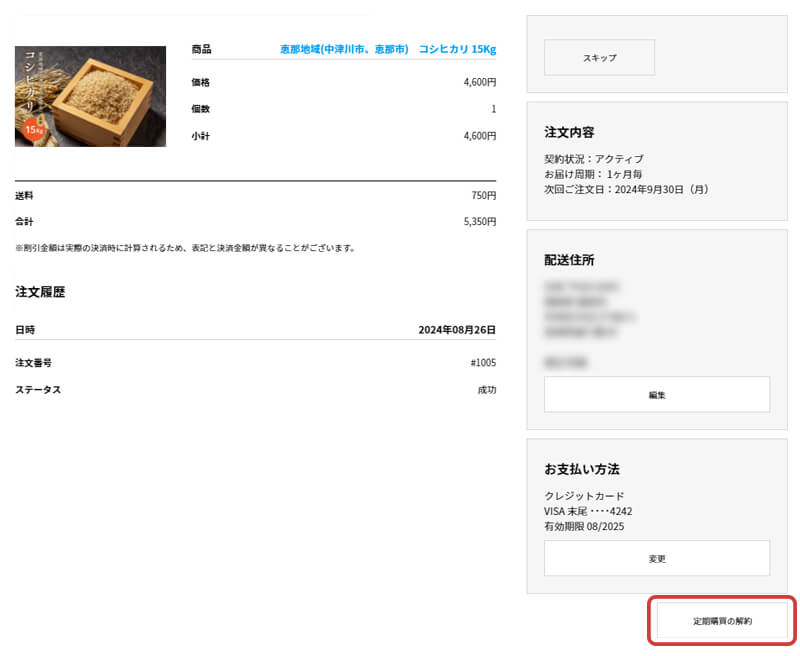 定期購入は自動的に継続されます。